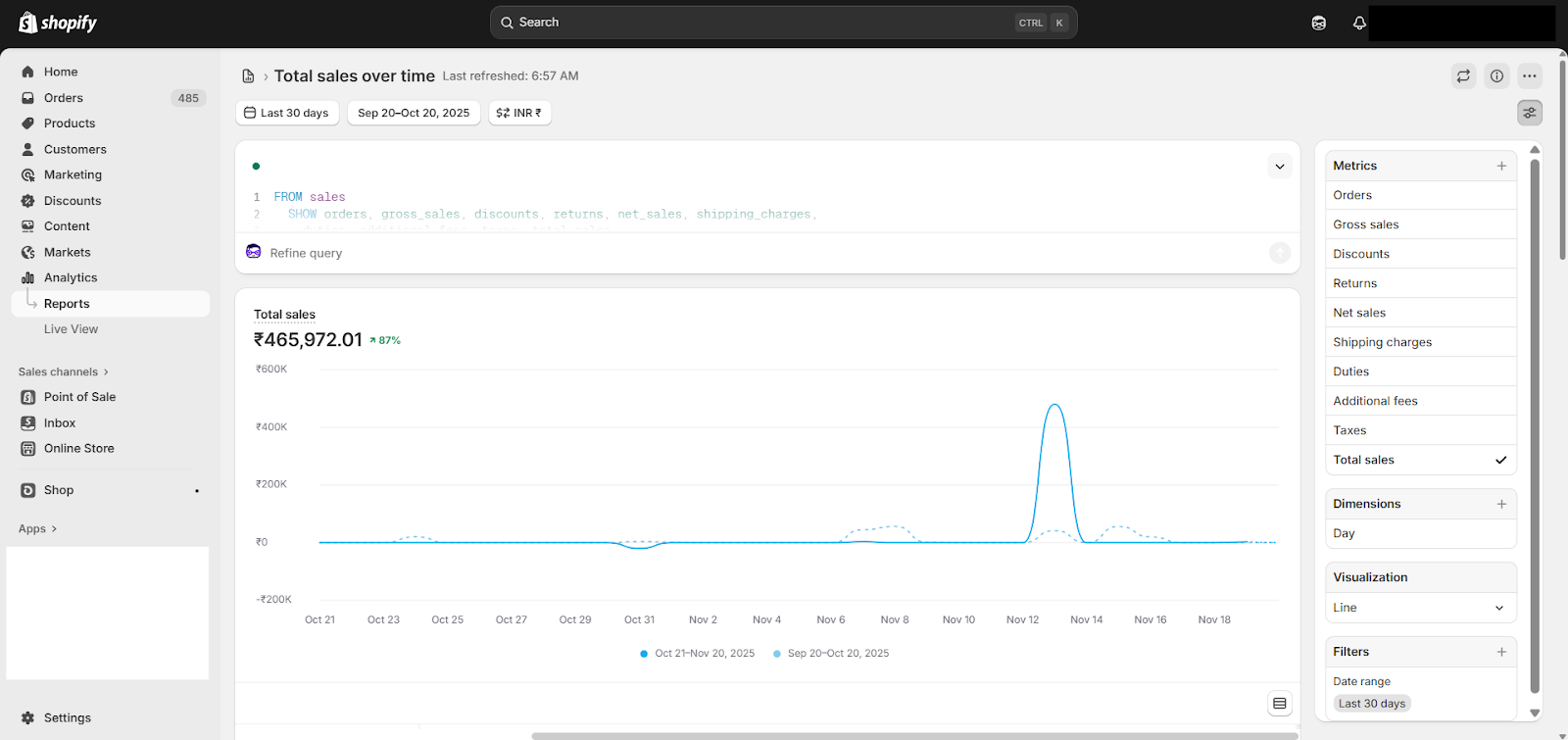 Understanding how your sales change over time is key to running a successful store. It is not just about knowing about revenue but also about understanding the story behind it. The Total Sales Over Time report gives you a clear view of how your store is performing, helping you spot trends, seasonal changes over time. It highlights the results of your marketing efforts, helping you see what’s working and where adjustments may be needed.
