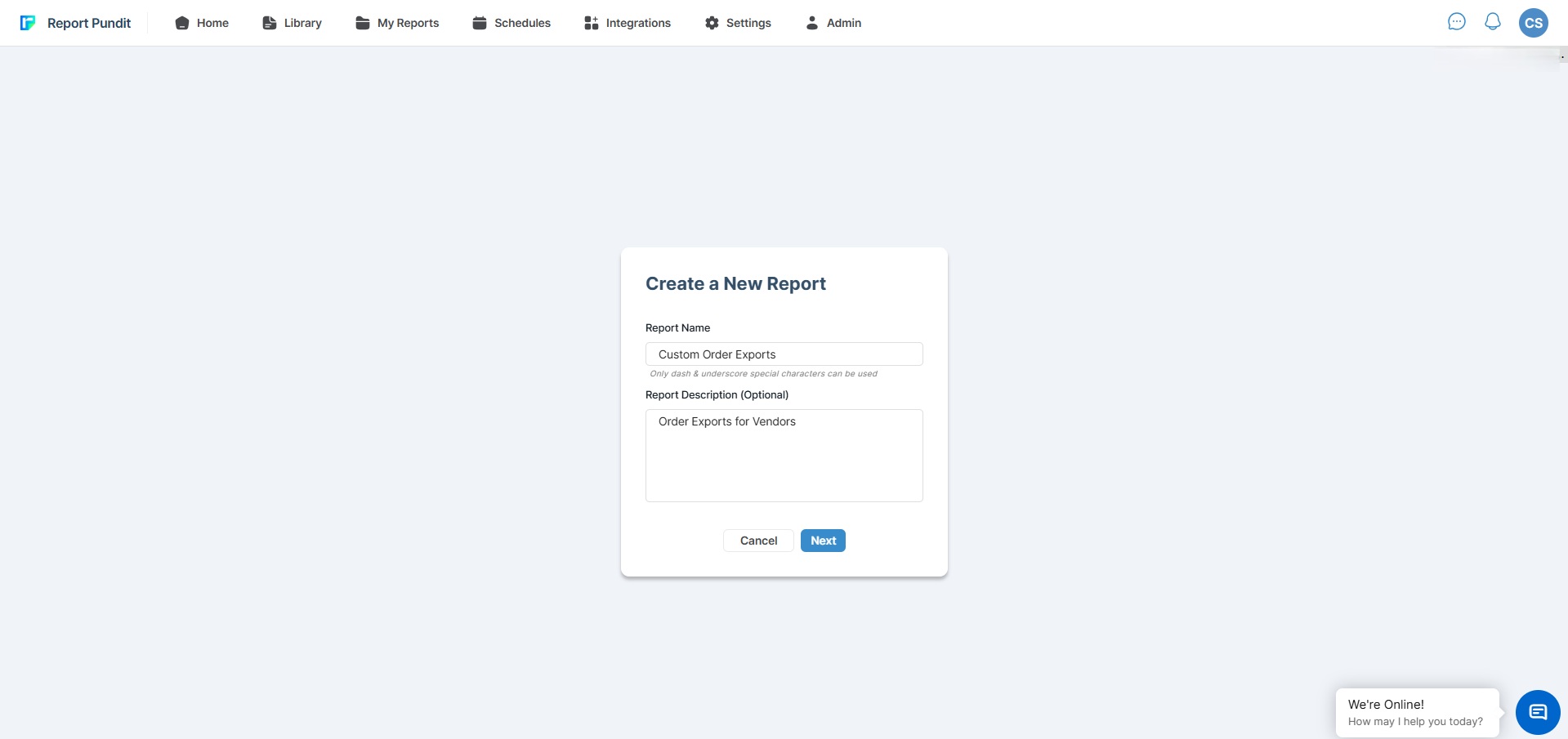 To begin, install and open Report Pundit from your Shopify admin. Create a new report and select Orders as the primary data source. From there, you can customize the report to include only the fields relevant to your warehouse team, such as order number, SKU, product name, quantity, variant details, shipping address, fulfillment status, tags, and priority notes.